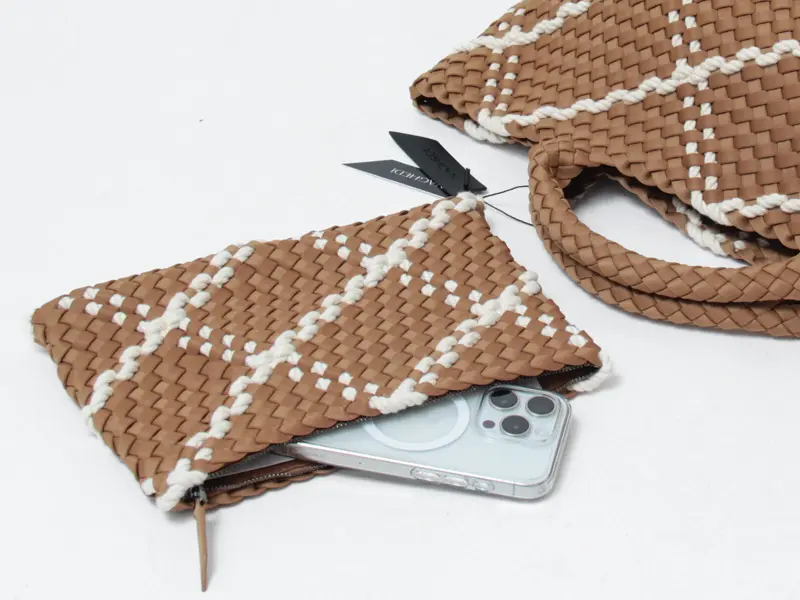 バッグと同素材のポーチ(約17.5×24.5cm)が付属されており、お財布やスマホなど貴重品を入れて、ちょっとそこまでのミニバッグとしてもお使いいただけます。