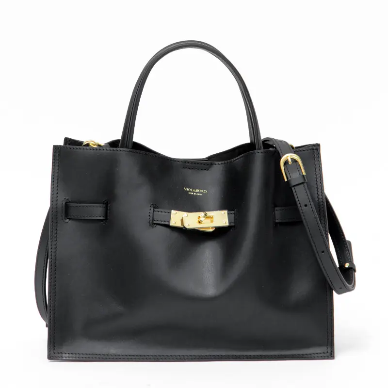 VIOLAd'ORO ヴィオラドーロ REMY イタリアンレザー 2wayトートバッグ(M) V-1562 ブラック