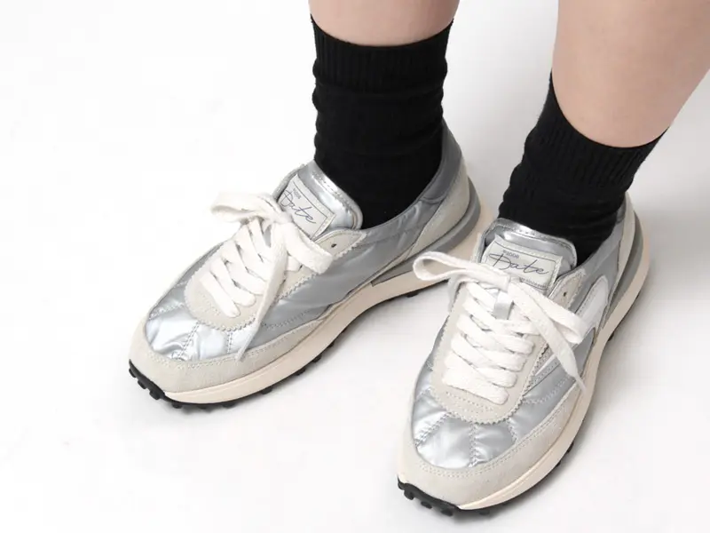 シンプルなローカットスニーカーに異素材を組み合わせた、カジュアルだけでなくキレイめスタイルにも馴染む“シルバー系”スニーカー。馴染みの良いメタリックカラーはどんな服にも合わせやすく、履くだけで旬のムードを纏い、足元から気分を上げてくれる一足です。