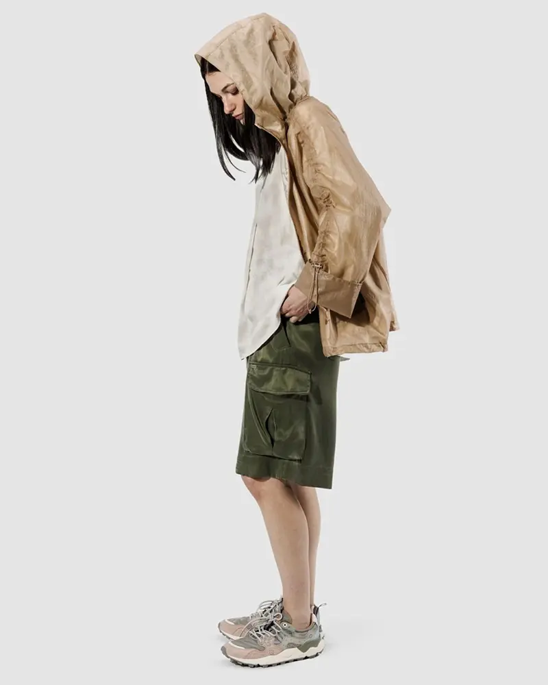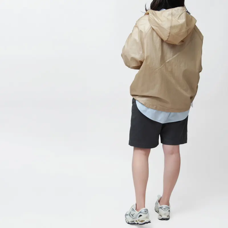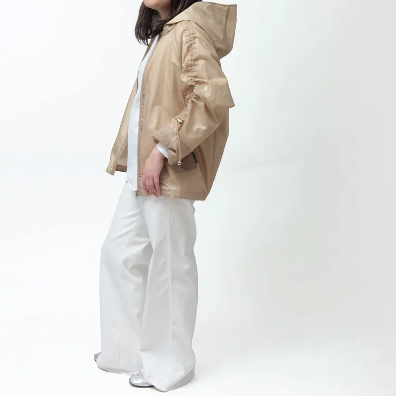 オーバーサイズでありながら、ラフになりすぎない上品さも持ち合わせたフーデッドブルゾン。トランスペアレントでファッション性もありながら撥水効果もあるので、少々の雨は気にせずお使いいただけます。
