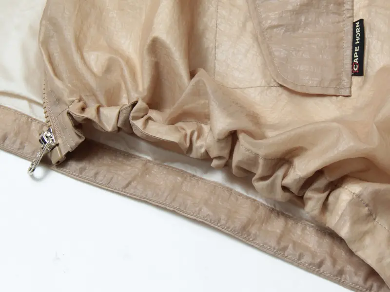 軽やなシアー素材にドロストデザインが魅力のCAPE HORN(ケープホーン)のマウンテンパーカー"LAVAS"。ゆったりとしたシルエットに、袖と裾のドローコードがアクセントをプラス。洗練された都会的なデザインは、カジュアルからきれいめスタイルまで幅広くマッチし、さまざまなシーンで活躍するフーデッドブルゾンです。