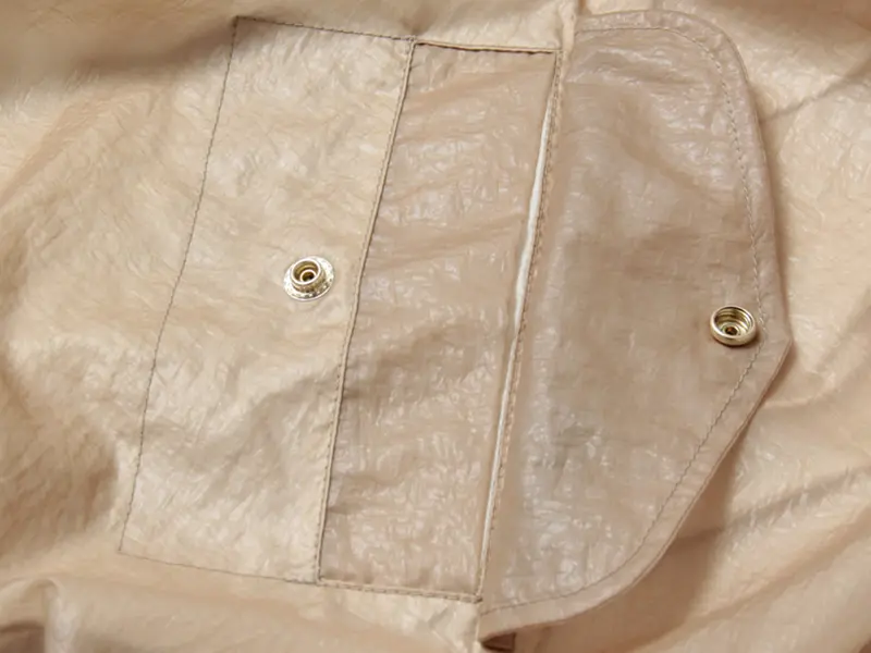 外側両サイドにスナップボタン付きのポケットがあります。