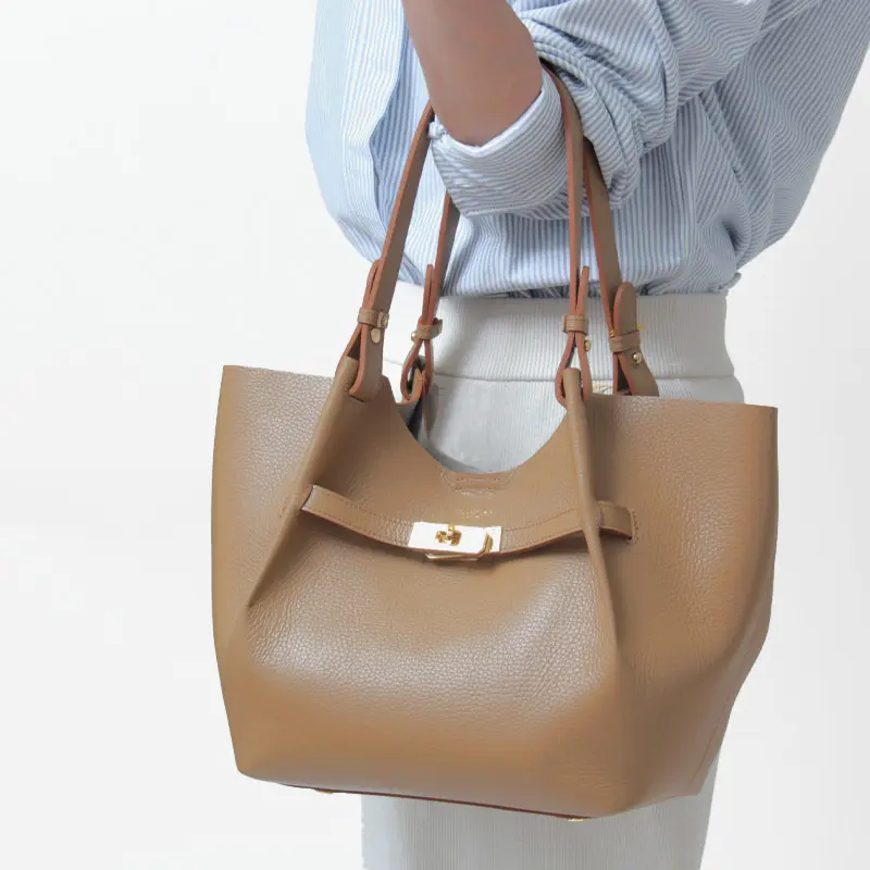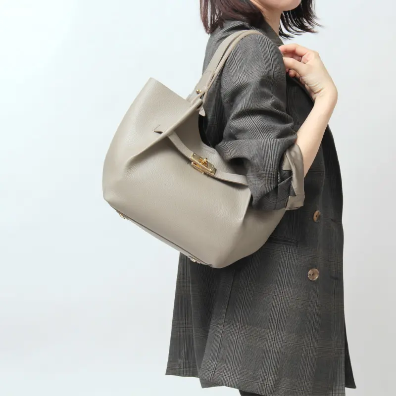 優雅な曲線が特徴の本革トート