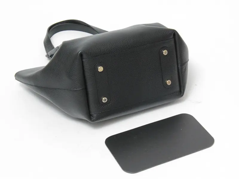 底板付きで、荷物を入れた時に型崩れしにくい仕様になっています。置いたときの安定感と、底面の擦れや汚れを防いでくれる底鋲付きです。