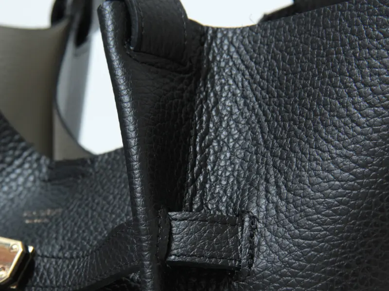 高級感を演出する牛革のショルダーは手馴染みも良い仕様。薄手の服だと肩掛けがしやすいデザインになっています。