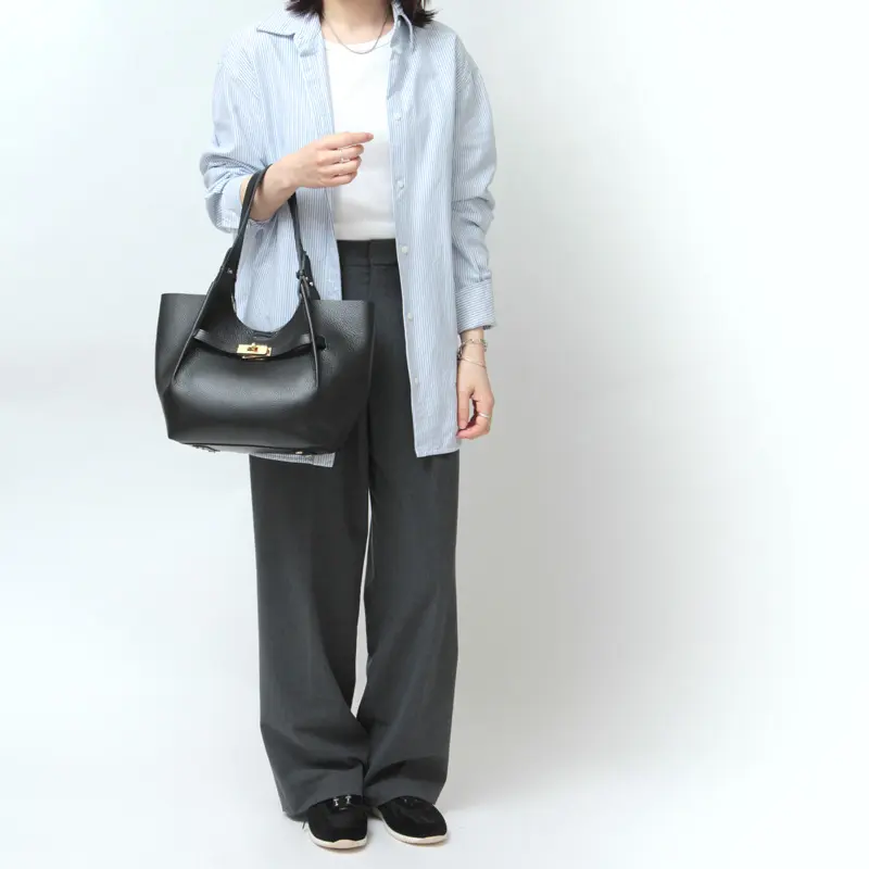 フロントの金具デザインは、ほんの少し個性が立つデザイン性もおしゃれ心をくすぐります。