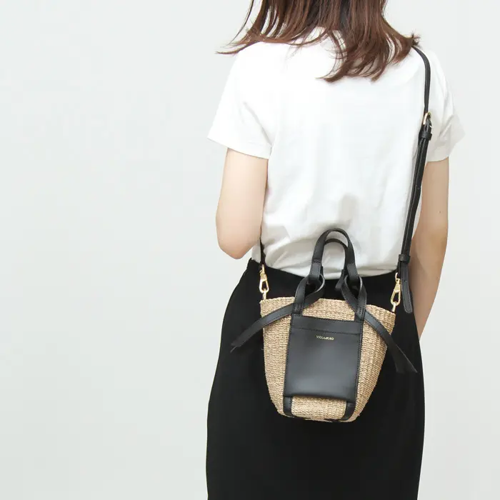 クロスしたハンドルがリボンみたいで可愛い"VIOLAd'ORO ヴィオラドーロ"のカゴバッグ。小ぶりなサイズ感はアクセサリー感覚でコーディネートに合わせていただけます。必要最小限の荷物が収まり、斜めがけもできる2wayバッグはお出かけに活躍してくれます。