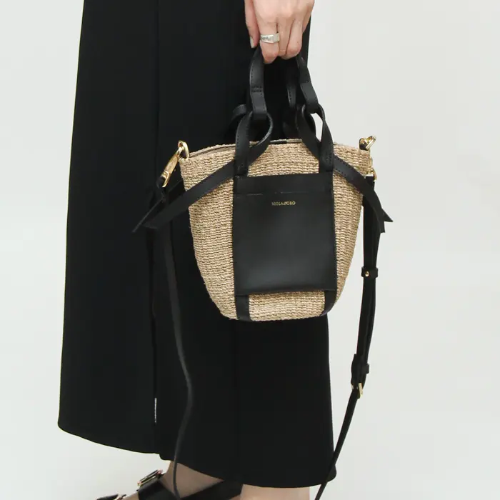 VIOLAd'ORO ヴィオラドーロ MIRO アバカ レザーポケット 2wayかごバッグ (S) V-8624 ナチュラル×ブラック