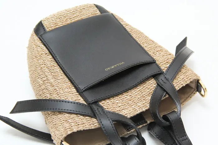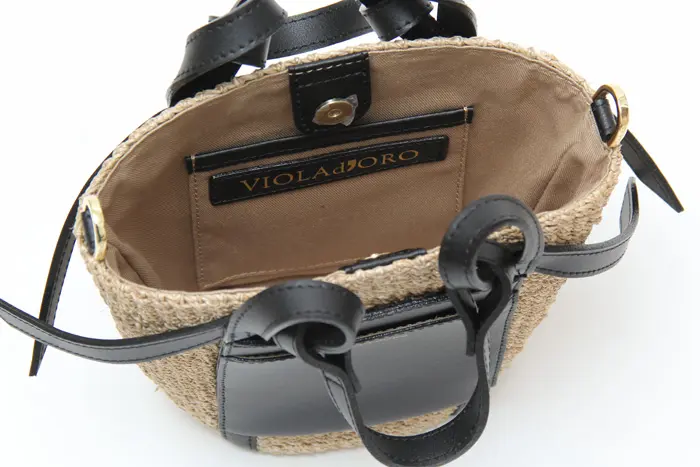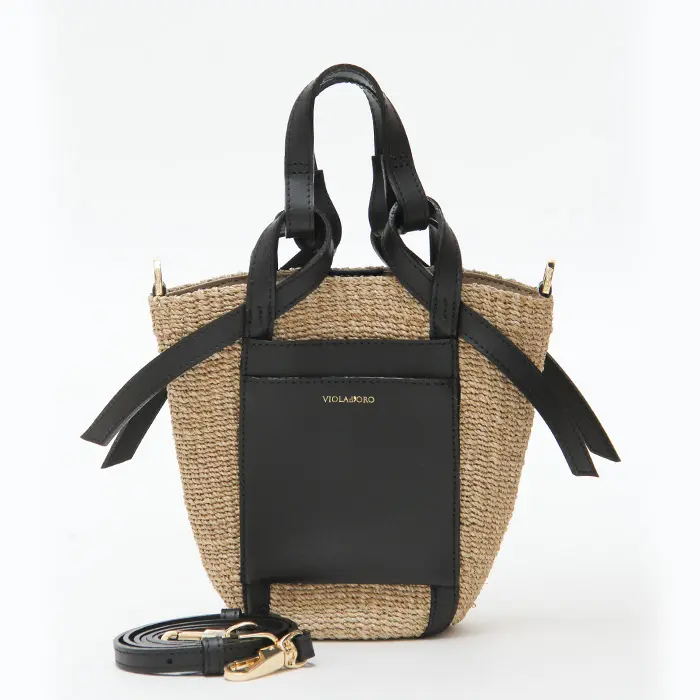 VIOLAd'ORO ヴィオラドーロ MIRO アバカ レザーポケット 2wayかごバッグ (S) V-8624 ナチュラル×ブラック