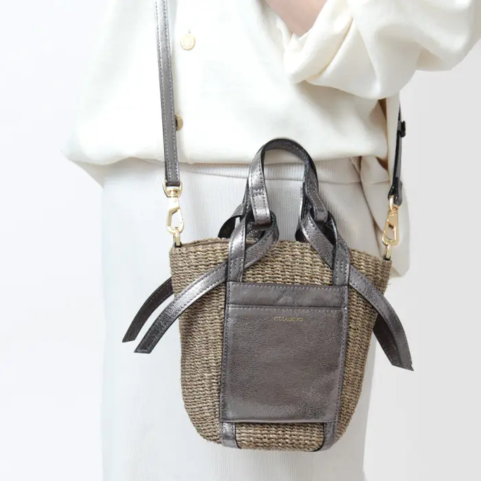 VIOLAd'ORO ヴィオラドーロ / MIRO アバカ レザーポケット 2wayかごバッグ (S) V-8624