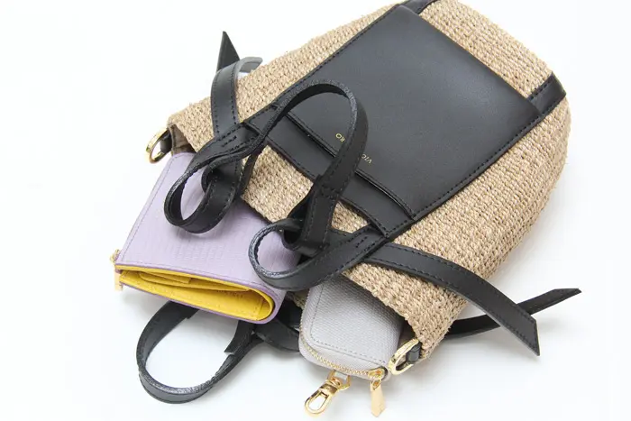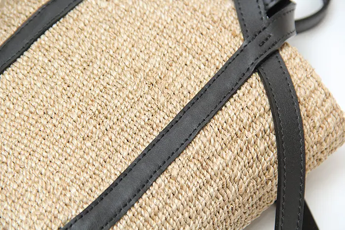 本体素材はファインアバカを使用しています。通常のアバカよりも網目が細かく、しなやかな仕上がり。レザーはスムース調のイタリアンスプレットレザーを使い高級感をプラスします。天然素材ならではのナチュラル感がありながらも、品よくお持ちいただけます。