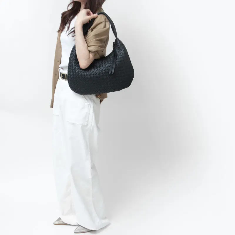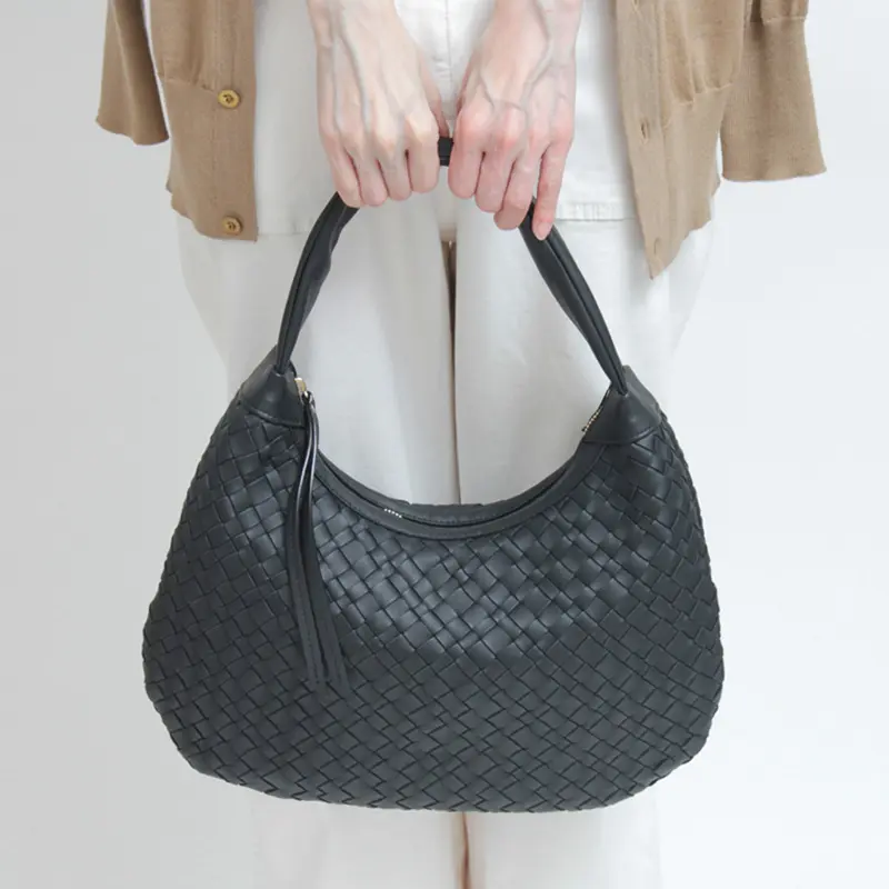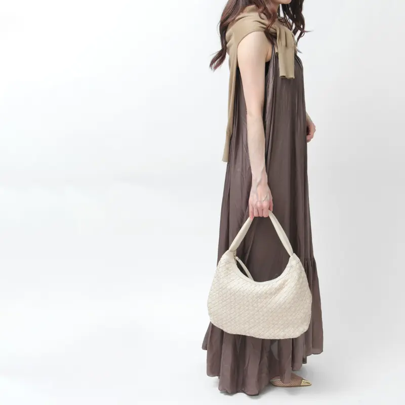 ゆったりと肩掛けできるワンショルダーバッグ。ハンドルはしなやかなレザーを使用していて太めな作りになっているため、快適にお持ちいただけます。
