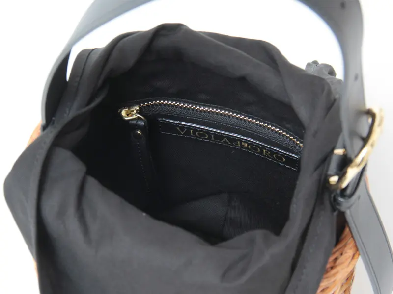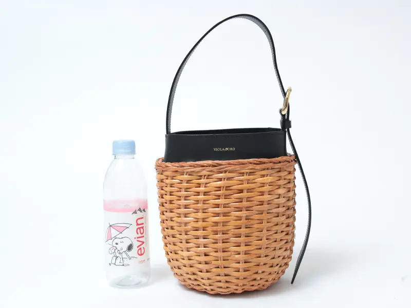 コロンとしたサイズ感が愛らしい"VIOLAd'ORO ヴィオラドーロ"のカゴバッグ。ラタン素材のナチュラルな雰囲気にシックと黒レザー組み合わせが、上質感を演出します。長財布などの必需品が綺麗に収まり、デイリーバッグに最適です。きれいめにもカジュアルにもマッチするアイテムです。