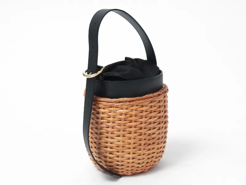 レザーベルトは長さ調節可能なデザイン。ラタンの風合いとレザーのショルダーが上品に調和し、ゴールド金具が大人の女性にぴったりのアクセントをプラス◎腕に掛けたり、さっとハンドで持つだけで、こなれ感のある着こなしが完成します。