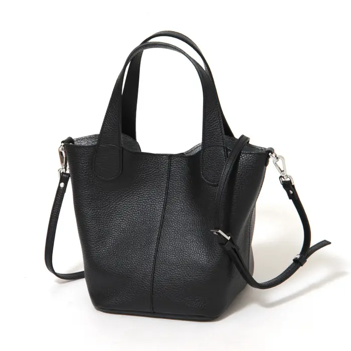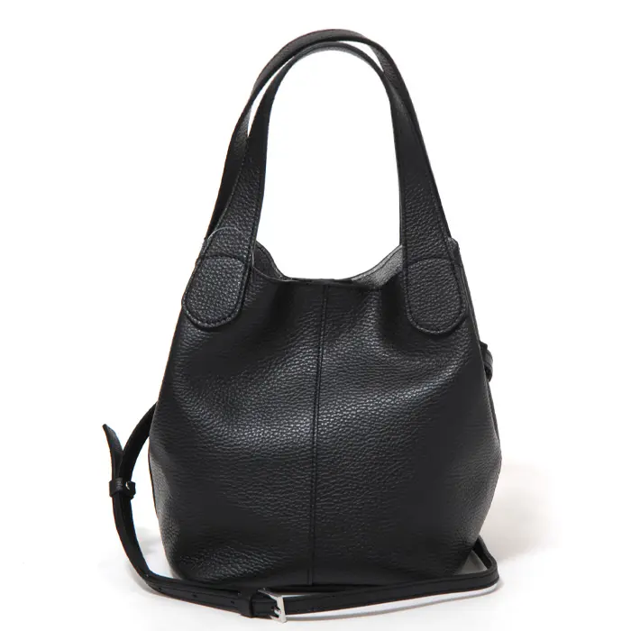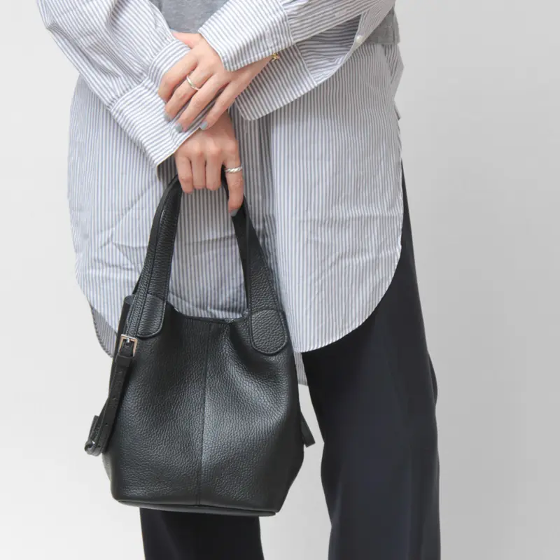イタリアブランドRIPANI(リパーニ)のANNA(アンナ)は、上質な素材と洗練されたデザインが魅力のトートバッグです。一枚革仕立ての柔らかさと可愛らしいフォルムが特徴で、マチ幅もあり荷物をしっかり収納できます。裏地のシルバーがさり気ないアクセントとなり、内側のフックを外せばさまざまなスタイルに変化します。ショルダーストラップを付ければ肩掛けや斜め掛けも可能。シンプルかつモードなデザインが装いをクラスアップしてくれます。