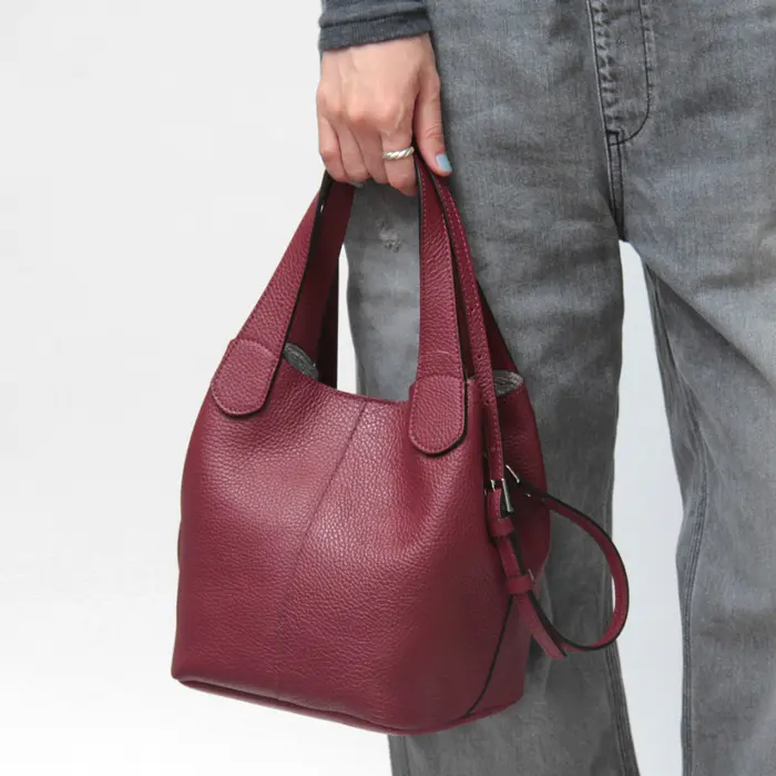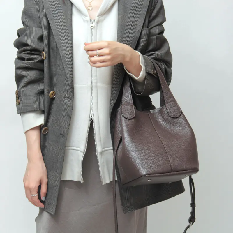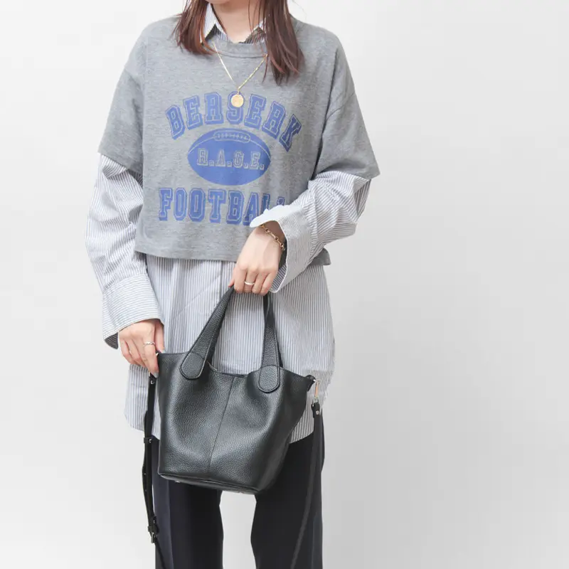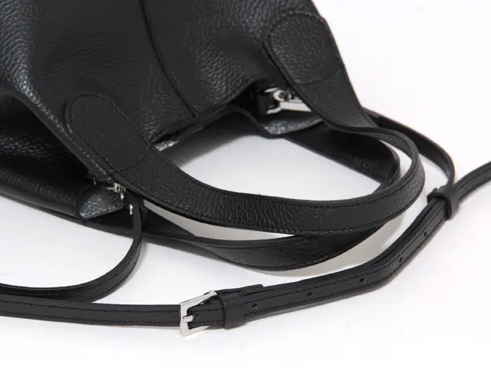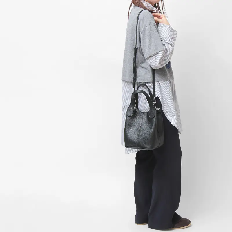 腕に掛けても、ハンドで持ってもバランスの良いハンドルの長さ。ショルダーストラップは取り外し、長さ調節可能。斜め掛けが可能なので、両手が空きショッピングや旅行などアクティブな日、お子様とのお出かけにも便利です。