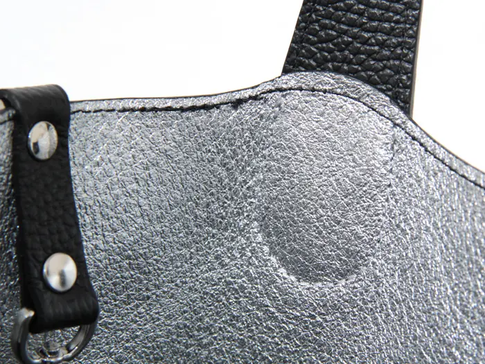 開閉はマグネット仕様。マチが充分にあり、長財布やポーチなどの必需品をゆったり収納できます。裏地にはシルバーのメタリックカラーが施され、チラリと見えるさり気ないアクセントが魅力的。普段使いからかしこまったシーンまで、幅広くお使いいただけます。