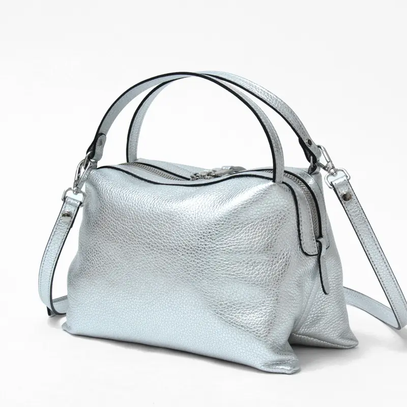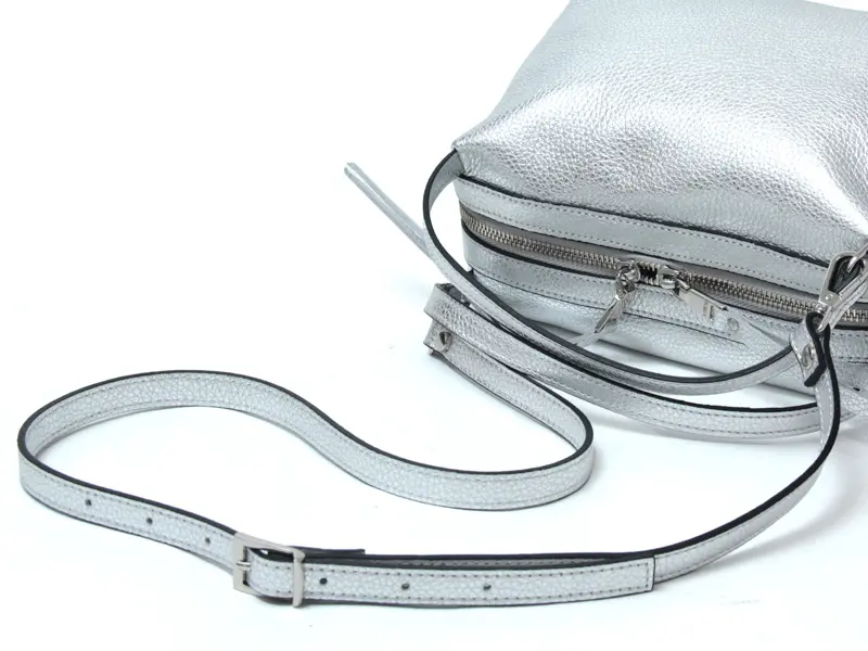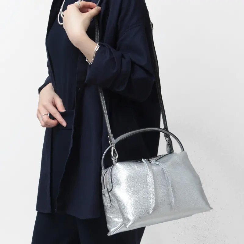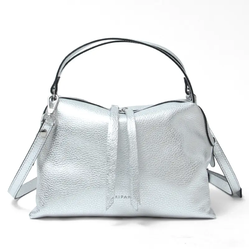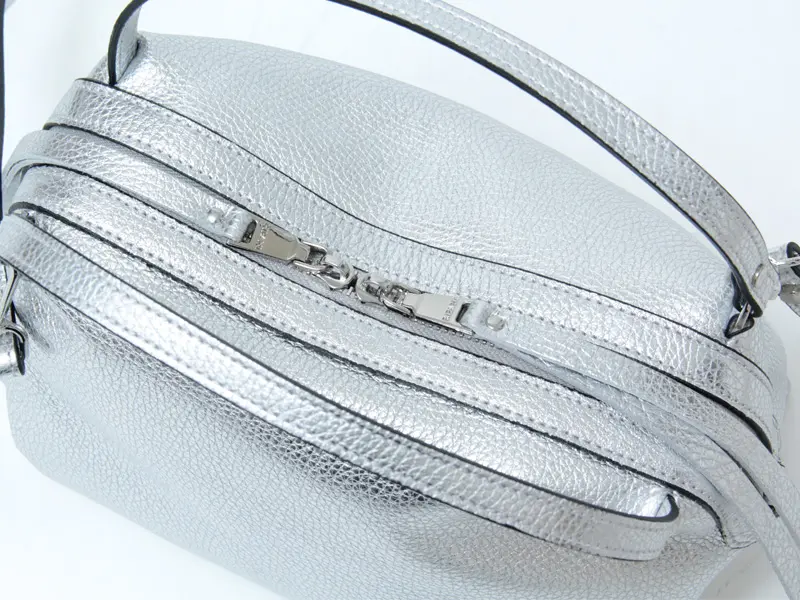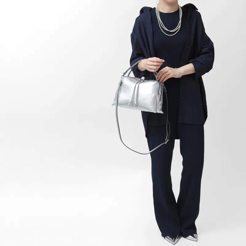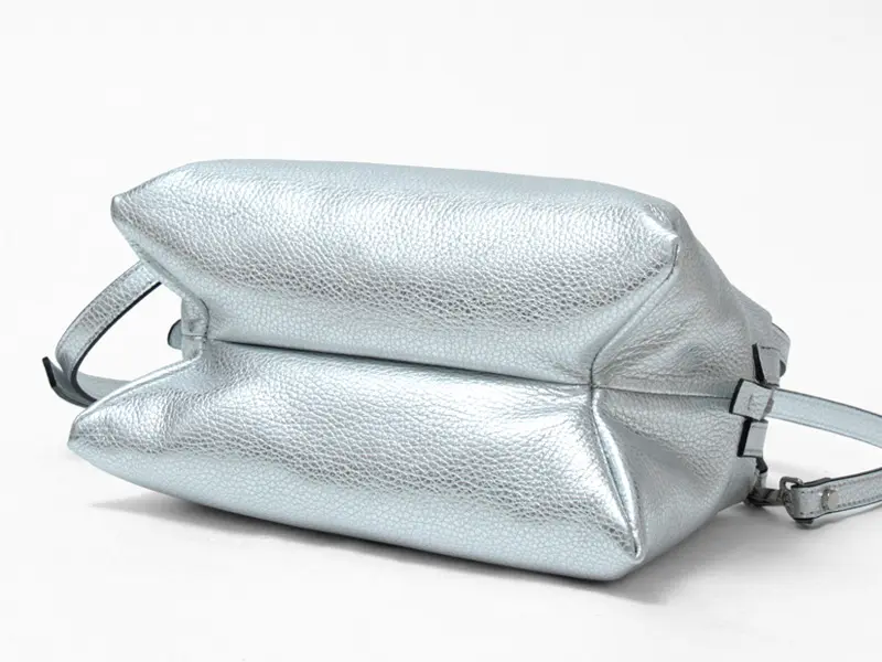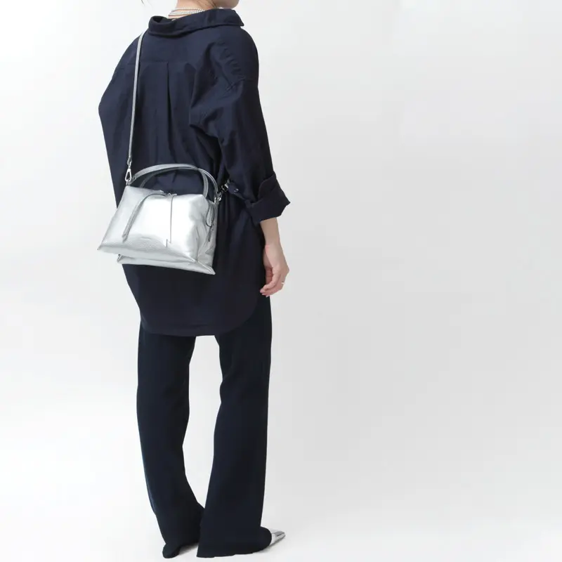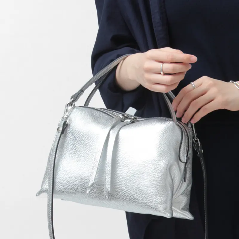 コロンとした丸みのあるシルエットが魅力の“RIPANI リパーニ”の2wayトートバッグ。上品なシルバーの輝きが、シンプルなコーディネートに洗練された印象をプラスします。シボ加工が施されたシュリンクレザーは、程よいハリとコシを備え、上品な印象を演出するだけでなく、傷が目立ちにくく耐久性にも優れた素材です。ペットボトルがぴったり収まるサイズ感で、コンパクトながらマチがあるため収納力も抜群。日常使いにぴったりな絶妙な大きさが魅力です。