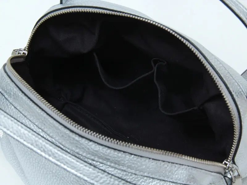 内側にはファスナーポケットが1つ、オープンポケットが2つあり、鍵やキーケースなどの小物も整理して収納できます。マチ幅が広いため、コンパクトなサイズながら長財布やペットボトル、折りたたみ傘も余裕を持って収納可能です。タウンユースはもちろん、通勤や旅行など、様々なシーンで活躍するアイテムです。