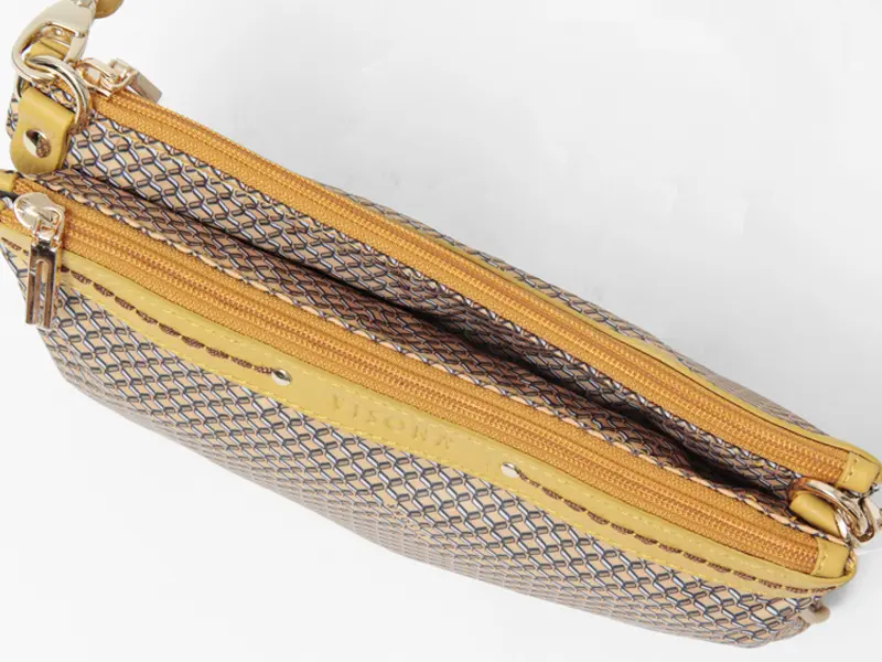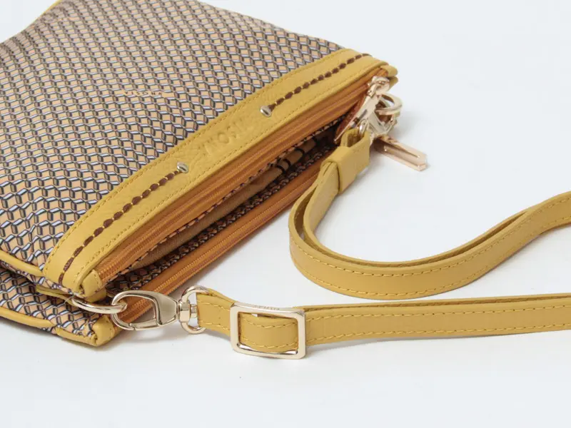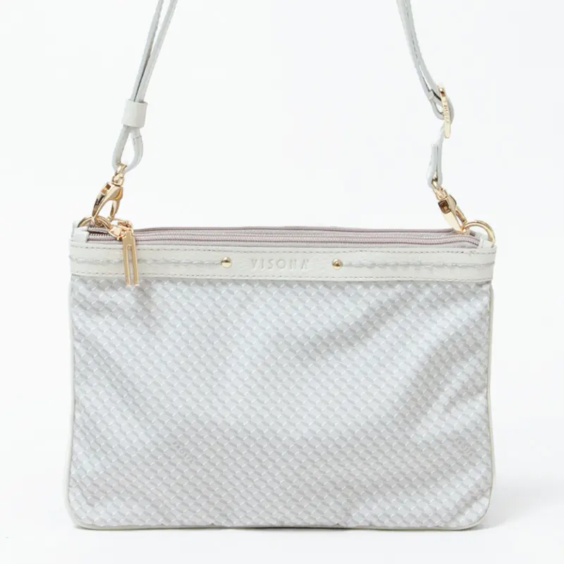 旅行やお出かけに最適なプリニオ ヴィソナ/PLINIO VISONAのスリムショルダー。イタリア製ならではの美しい仕立てと驚くほどの軽さ。上品な幾何学模様がさりげなく華やぎを添え、どんなコーディネートにも自然に馴染みます。500mlのペットボトルや長財布やスマホなど見た目以上の収納力でお出掛けに最低限必要な荷物が入ります。調節可能なショルダーは斜め掛けや肩掛けも可能です。