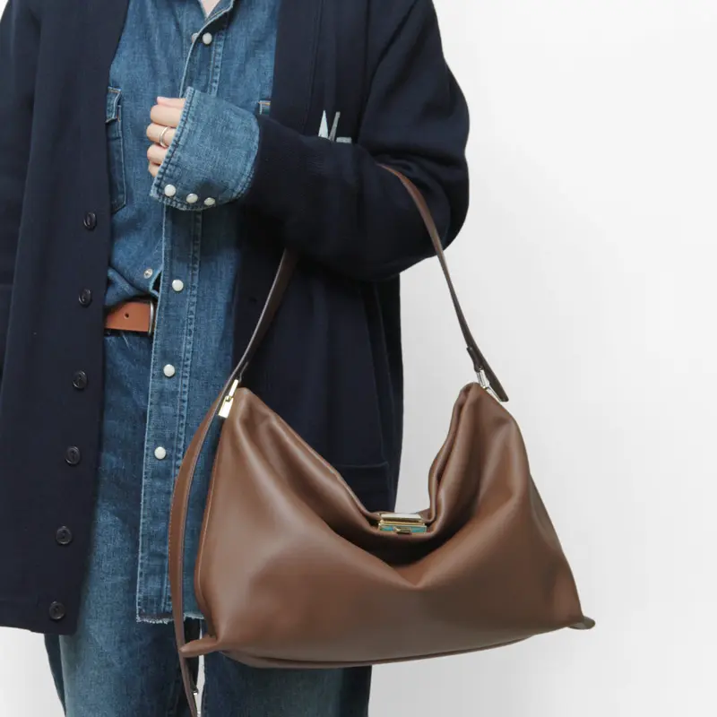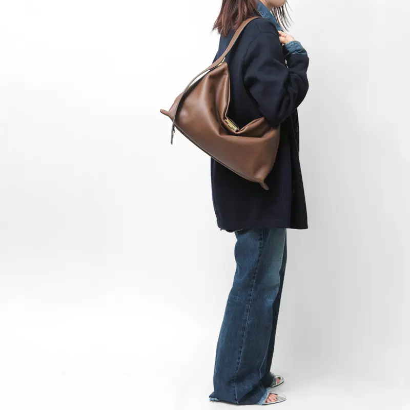 柔らかな牛革スムースレザーを使用し、上品な風合いを楽しめるPUNTI.(プンティ)の「GRAFT」シリーズ。オリジナル金具が口元に施され、エレガントな印象を引き立てます。ショルダー用金具は、紐を外した状態でも美しく見えるようデザインされ、クラッチバッグとしても使用可能。ショルダー紐は2WAY仕様で、シーンに合わせて調整できます。スタイルと実用性を兼ね備えた万能バッグです。