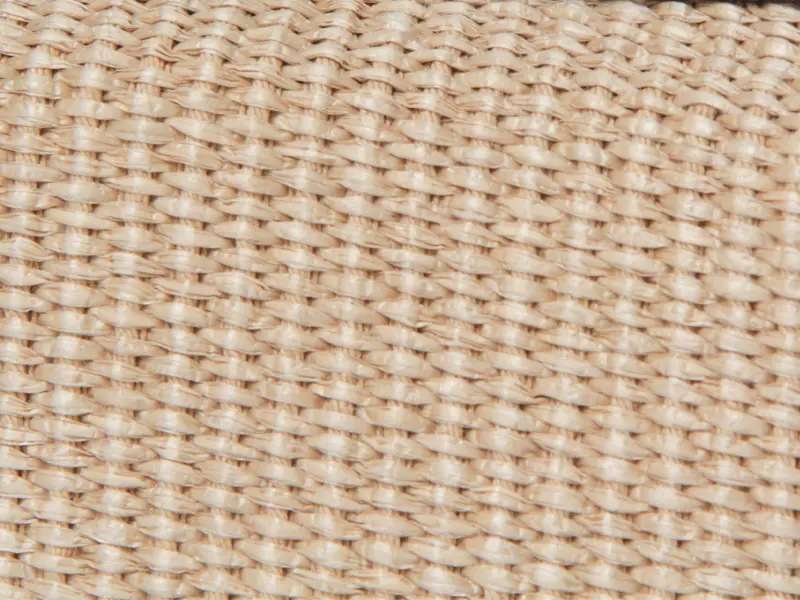 本体素材はコットンとポリアミドでできたイタリア製のラフィア調シートです。従来の手編みのかごバッグでは表現しづらいトレンド感のあるクリーンなデザインで、引っ掛かりのない滑らかな肌触りが特徴です。また天然素材に比べ、劣化しにくく、多少の雨でも安心してお持ちいただけます。