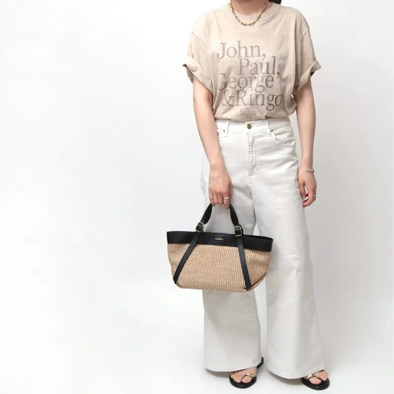 ラフィア調バッグで優雅なひととき。