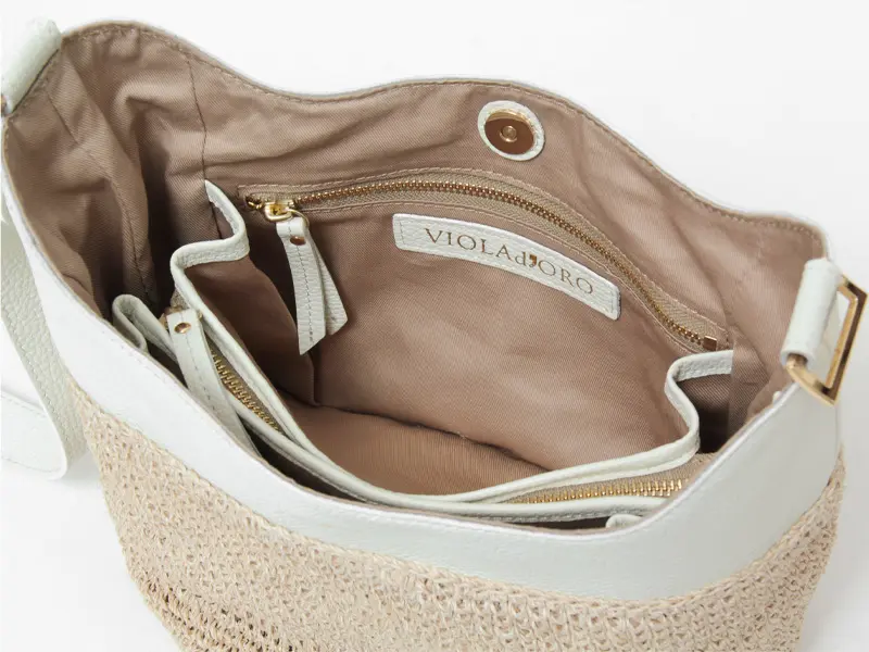 季節感ある天然素材のラフィアとレザーのハンドルがポイントの"VIOLAd'ORO ヴィオラドーロ"のかごバッグ。涼しげでナチュラルな風合いにリアルレザーが加わり、大人かわいい雰囲気に仕上がっています。箔押しされたブランドロゴや刻印を施した美しい金具使いが大人の手元を彩ります。
