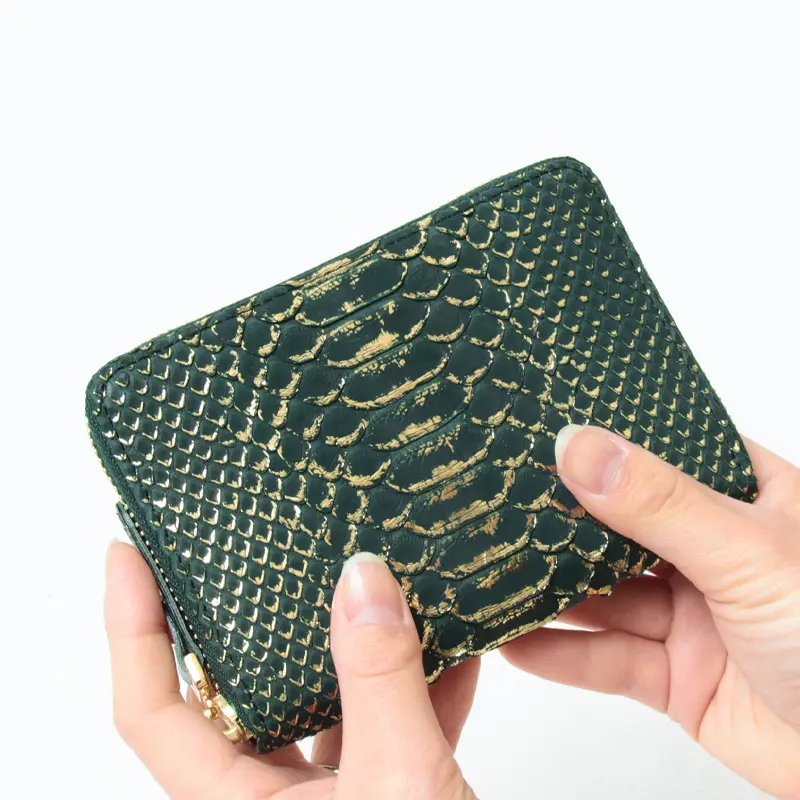 • VIA DOAN ヴィアドアン Verde パイソン ラウンドファスナー 二つ折り 財布