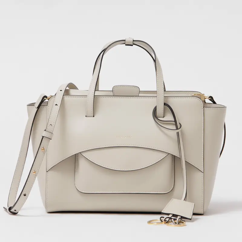 本体には上質なイタリアンレザーを使用し、フィレンツェ近郊の職人によって丁寧に手作業で仕上げられています。滑らかなカーフレザーが醸し出すエレガントな風格が、装いにクラス感を添えてくれます。