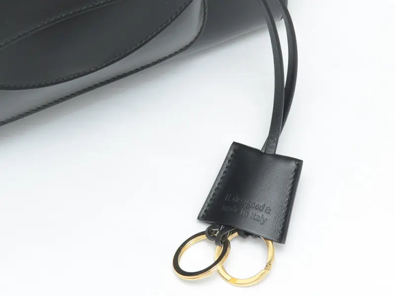 バッグのアクセントにもなる、取り外し可能なキーリング付き。