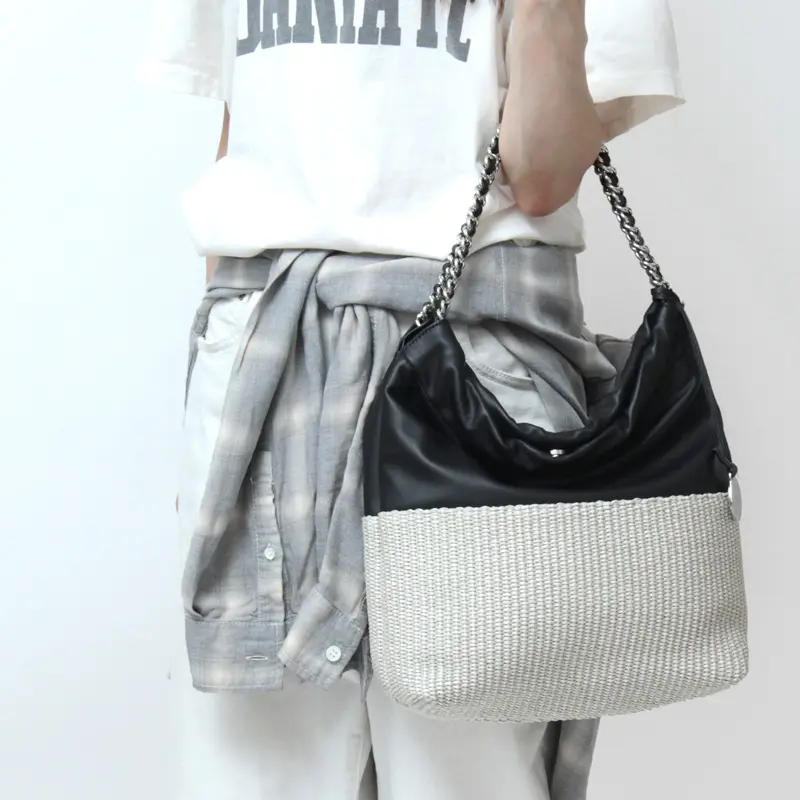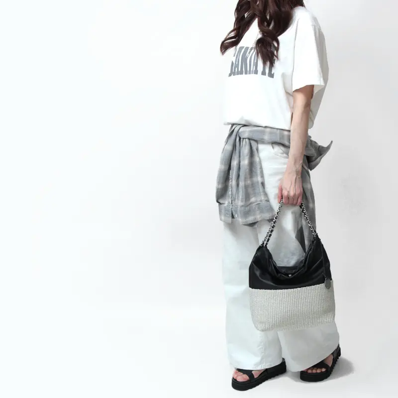 チェーンハンドルが女性らしさを引き立て、エレガントで華やかな印象を演出する“MARCO MASI マルコマージ”のかごバッグ。必需品に加え、+αの荷物もしっかり収納できる実用的なサイズ感。カジュアルコーデはもちろん、きれいめコーデにも馴染み、幅広いスタイルにマッチします。デザイン性と機能性を兼ね備えさまざまなシーンで重宝する優秀なバッグです。