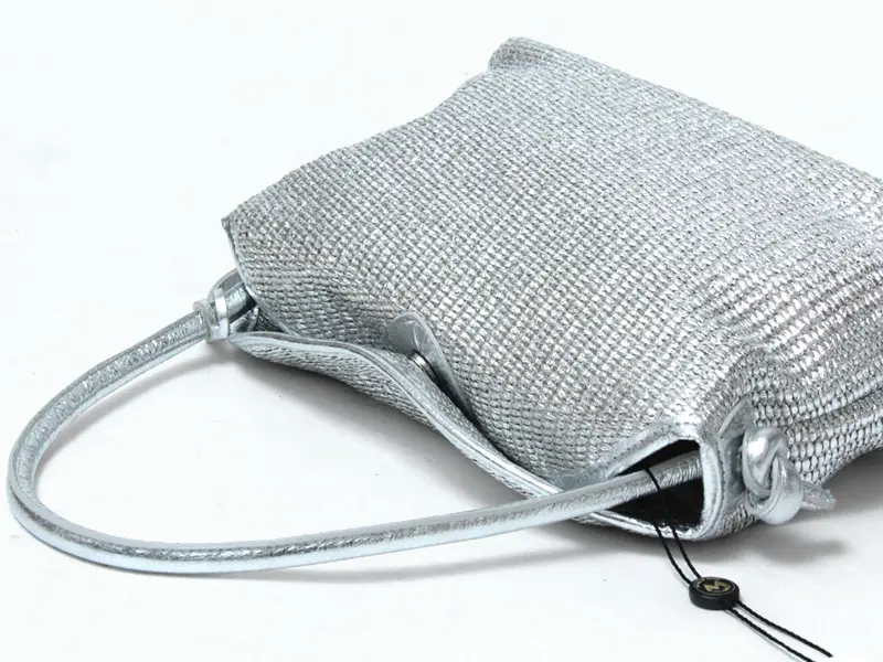 本製品にはシルバーの染色加工が施されております。ご使用中の摩擦等により、粉状のラメが衣類などに付着する可能性がございます。特に淡色のお召し物をご着用の際は、十分にご留意くださいますようお願い申し上げます。