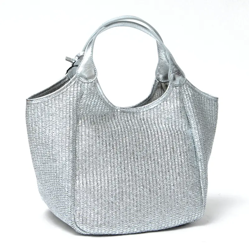 MARCO MASI マルコマージ イタリアンラフィアシート かごバッグ SILVER