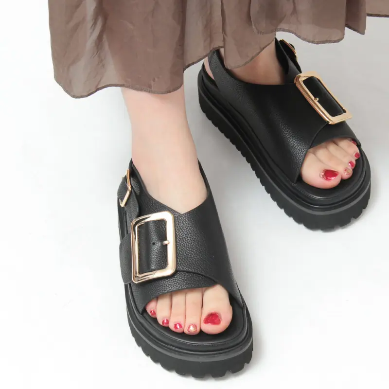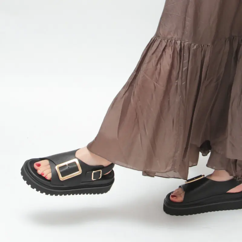ドレッシーでクラシカルな印象のビッグバックルが映えるストラップサンダル。ボリューム感のあるフォルムが今年らしく、取り入れるだけで旬なスタイリングに仕上がります。シンプルながらも上品さが漂うデザインは、モードな雰囲気はもちろん、カジュアルなデニムスタイルにもおすすめです。