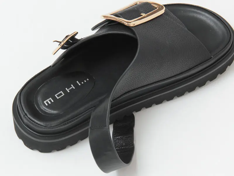 スペインのシューズファクトリー“MOHI モヒ”のレザーサンダル。シボを効かせた柔らかいレザーのアッパーは、本革ならではのリッチ感のある仕上がりで、アクセサリーのようなゴールドバックルがスタイリングのポイントになる1足。靴下との相性も良く、レイヤードスタイルも楽しめます。春先から秋口までロングシーズン活躍する一足です。