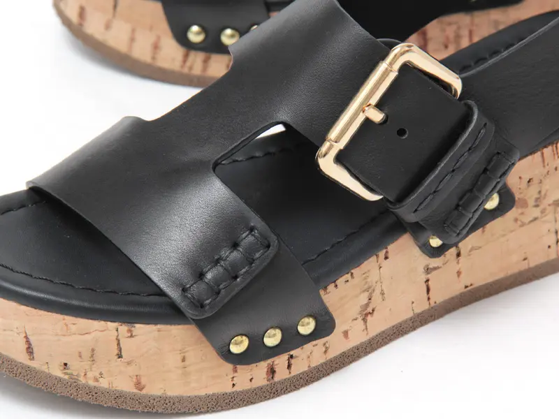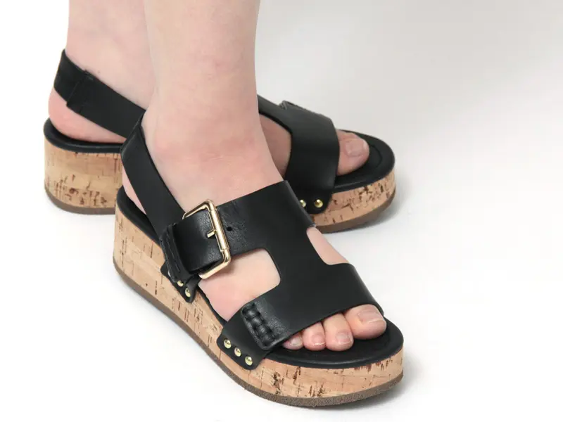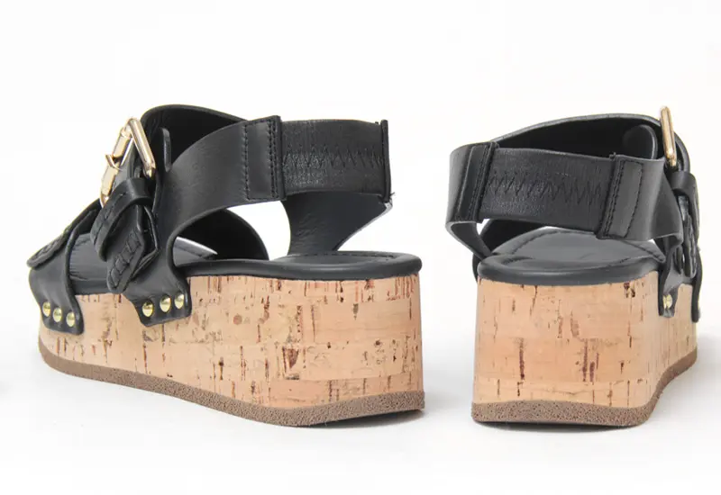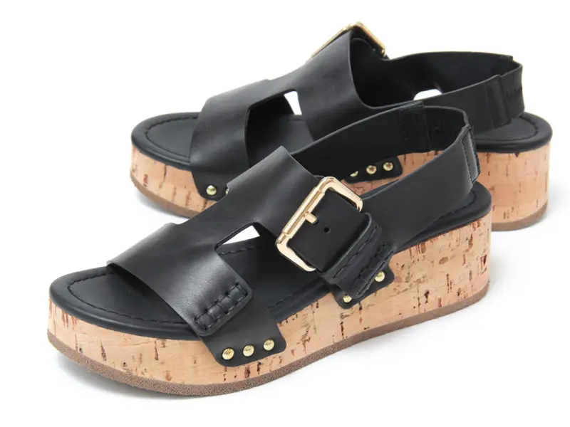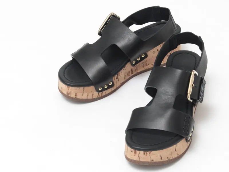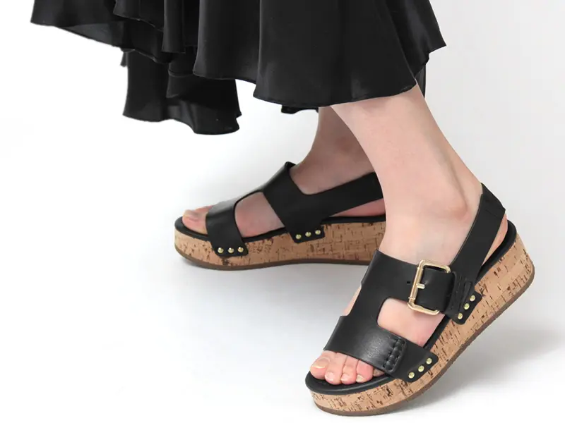 存在感あるコルクヒールが印象的な