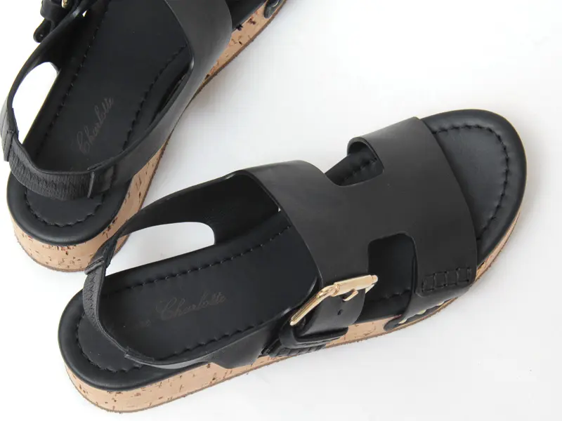 CLAIRE CHARLOTT クレアシャーロット レザー コルクソールサンダル BLACK