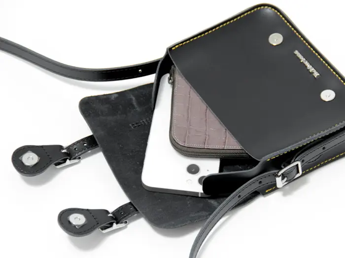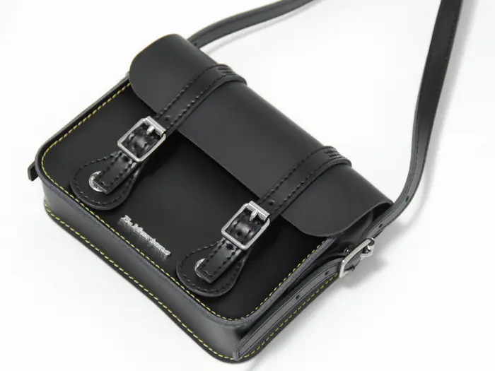 Dr.martens(ドクターマーチン)のミニサイズのサッチェルバッグ。ブランドのアイコニックなKIEVレザーとバックルデザインにイエローのステッチがアクセント。コンパクトながら存在感のある仕上がり。スマホやミニ財布などの必需品がコンパクトに収まるサイズ感。シンプルで無駄のないフォルムが、ストリートからモードまで幅広いスタイルにマッチします。