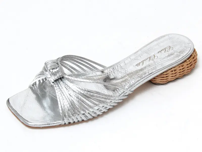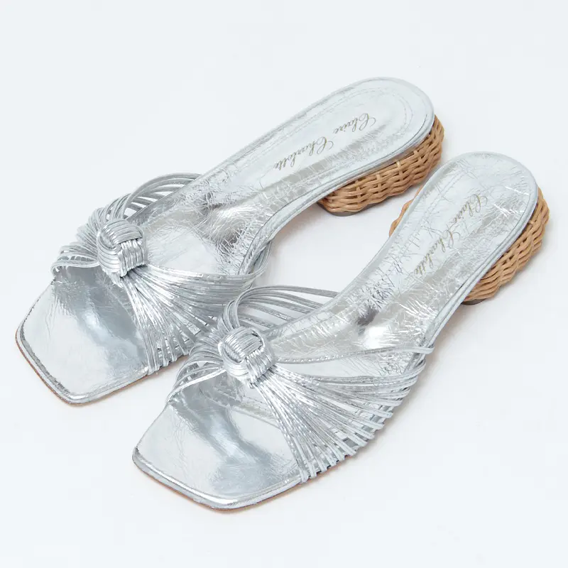 CLAIRE CHARLOTT クレアシャーロット ラタンヒール ミュールサンダル SILVER