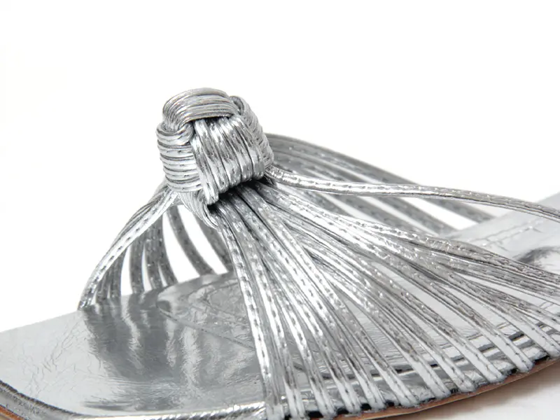 ハンドクラフトの技術と、モダンなデザインを兼ね備えた"CLAIRE CHARLOTTE クレア・シャーロット"のミュールサンダル。煌く細身のメタリックレザーコードがエレガントに絡み合い、特徴ある結び目デザインが一瞬でグラマラスなムードをプラス。ナチュラルラタンを使用した爽やかなソールが、軽やかなでこれからの季節にぴったりなデザインに仕上がっています。