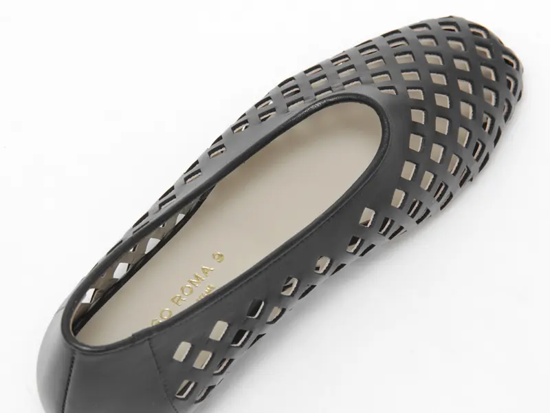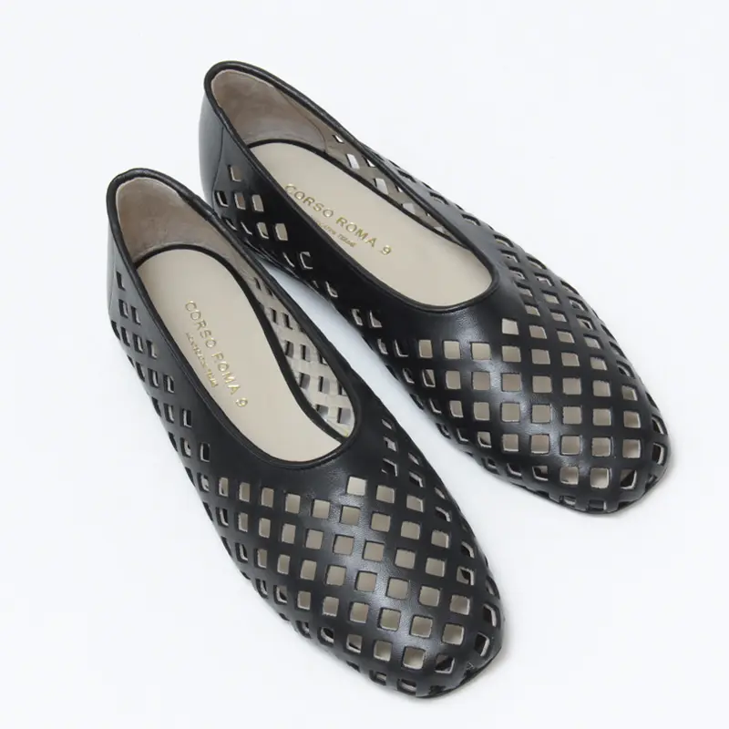 CORSO ROMA9 コルソローマ レザーメッシュ フラットパンプス BLACK
