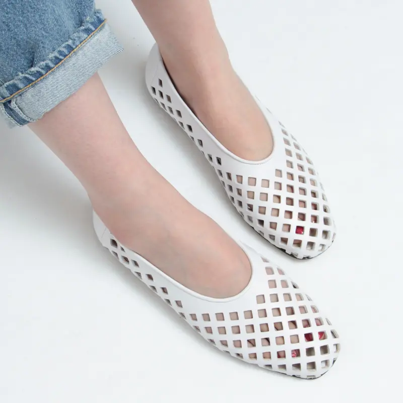 CORSO ROMA9 コルソローマ レザーメッシュ フラットパンプス WHITE