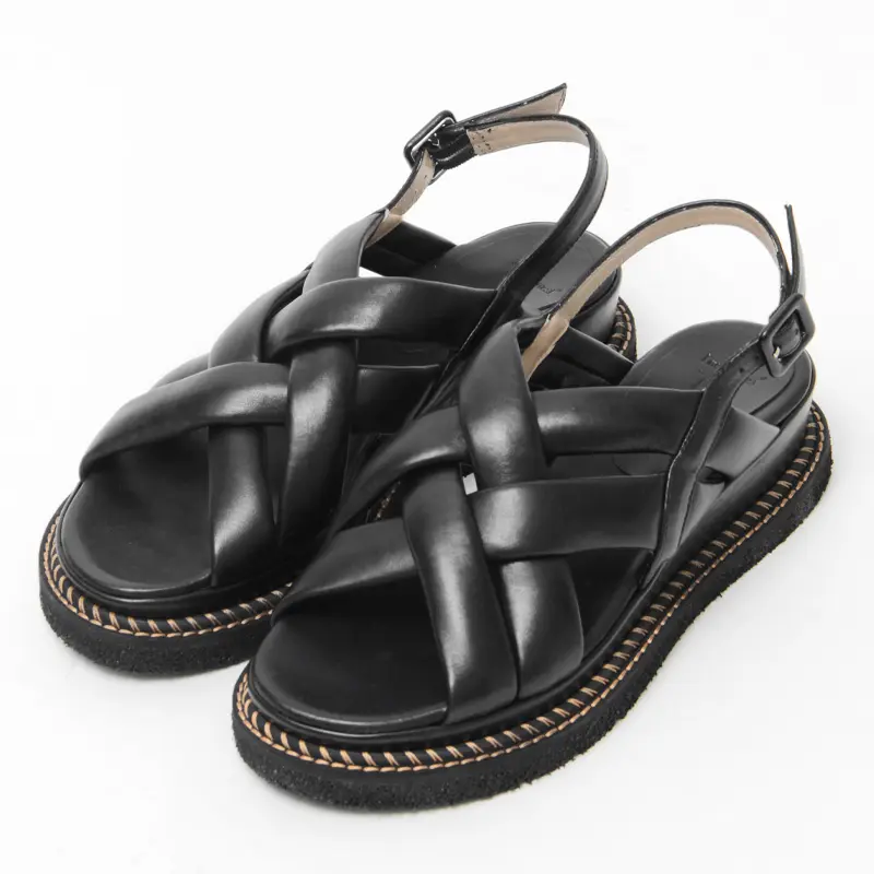 LUCA GROSSI ルカ グロッシ レザー クロスストラップ サンダル BLACK