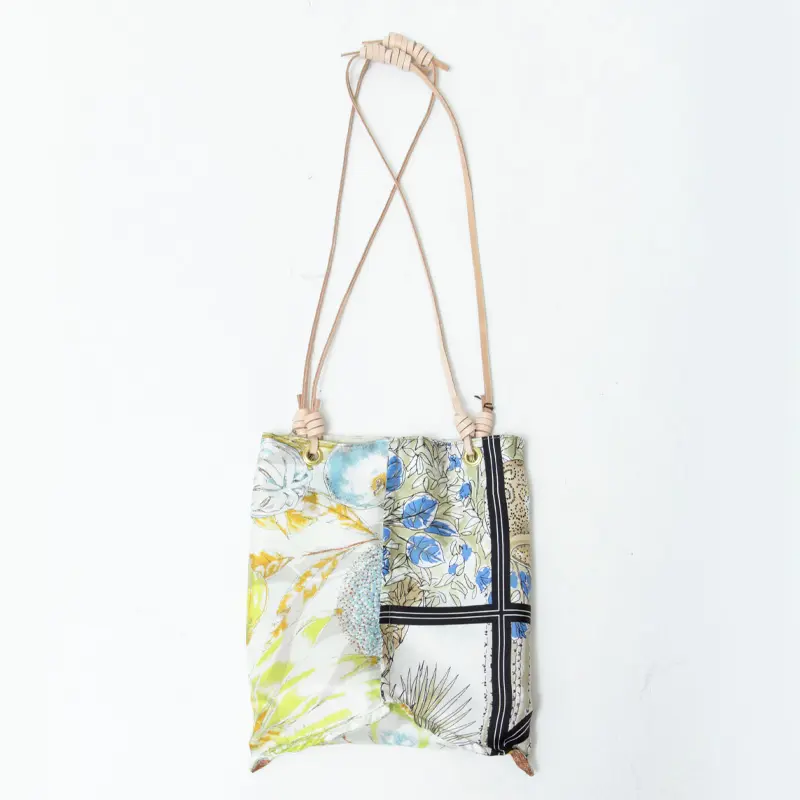 華やかな色彩の2種類のスカーフ生地をパネル切り替えした"manipuri/マニプリ"のスカーフバッグ。リバーシブルなので、ひっくり返せば麻を使用したシンプルなトートバッグへとデザインを替えることもできます。ミニサイズが可愛いSサイズは、長財布などお出かけの必需品が収まる小さめサイズです。