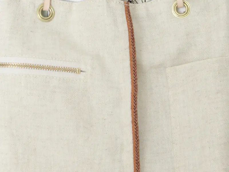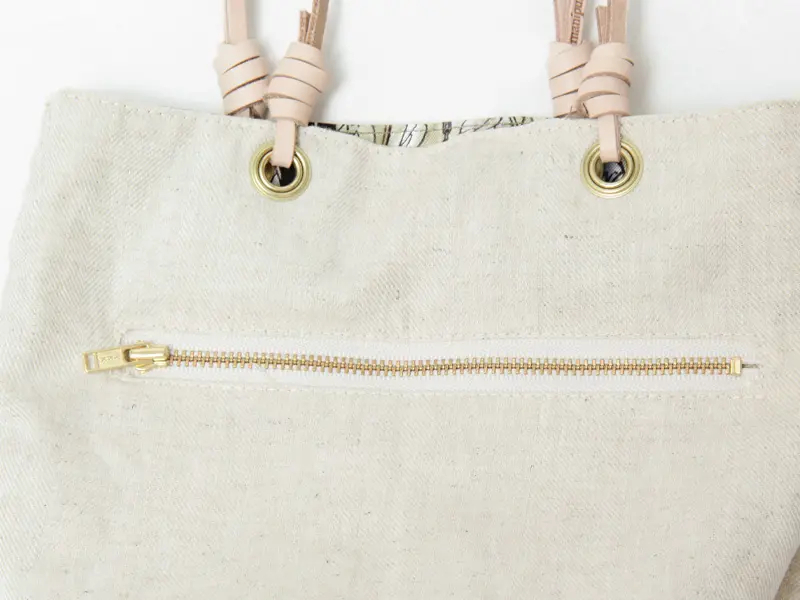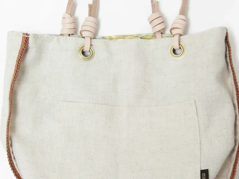 ひっくり返すと麻とコットンを使用したバッグへとスタイルを変える、2つの顔を持つミニトートです。シンプルなコーデに合わせたい時などにお勧めのスタイルです。オープンポケットとファスナーポケットがついており、小さめのバッグですが小物の整理もしっかりできます。