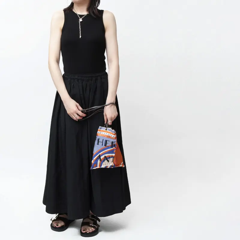 表面はシルクを使用したスカーフ生地になっており、高級感のある光沢が魅力です。 裏面は麻とコットンを使用した生地になっており、素材そのものの表情が美しく、シンプルながらも上品な印象を与えます。