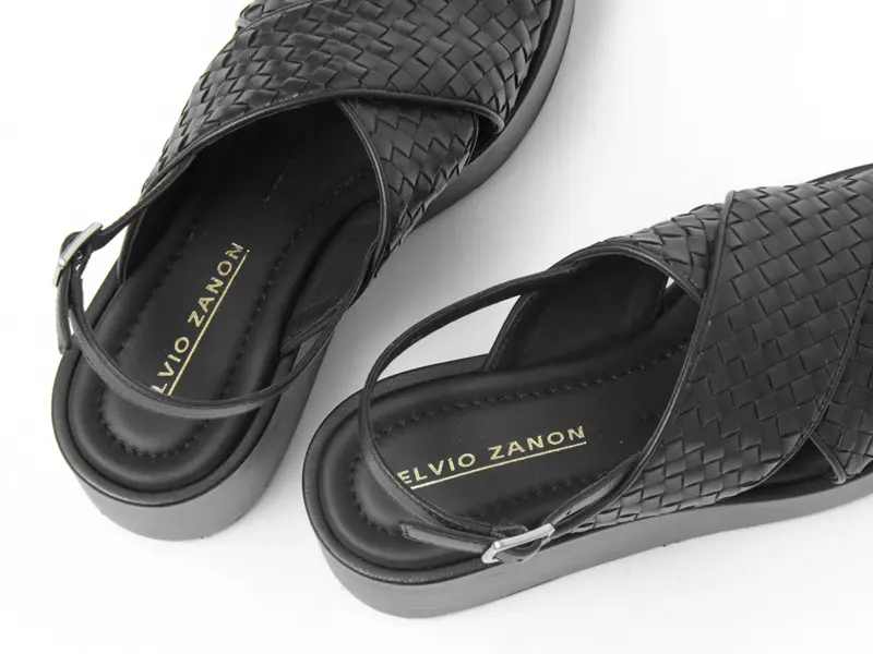 安定感のある厚めのプラットフォームで美脚効果抜群な"ELVIO ZANON エルビオザノン"のレザーサンダル。ワイドなメッシュレザーのクロスデザインが、カジュアルすぎずモダンな印象を演出。フラットなソールがしっかりと体重を支え、ヒールがありながら歩きやすく疲れにくいデザイン。デイリーにはもちろん、旅行や長時間の歩行にも活躍する万能アイテムです。