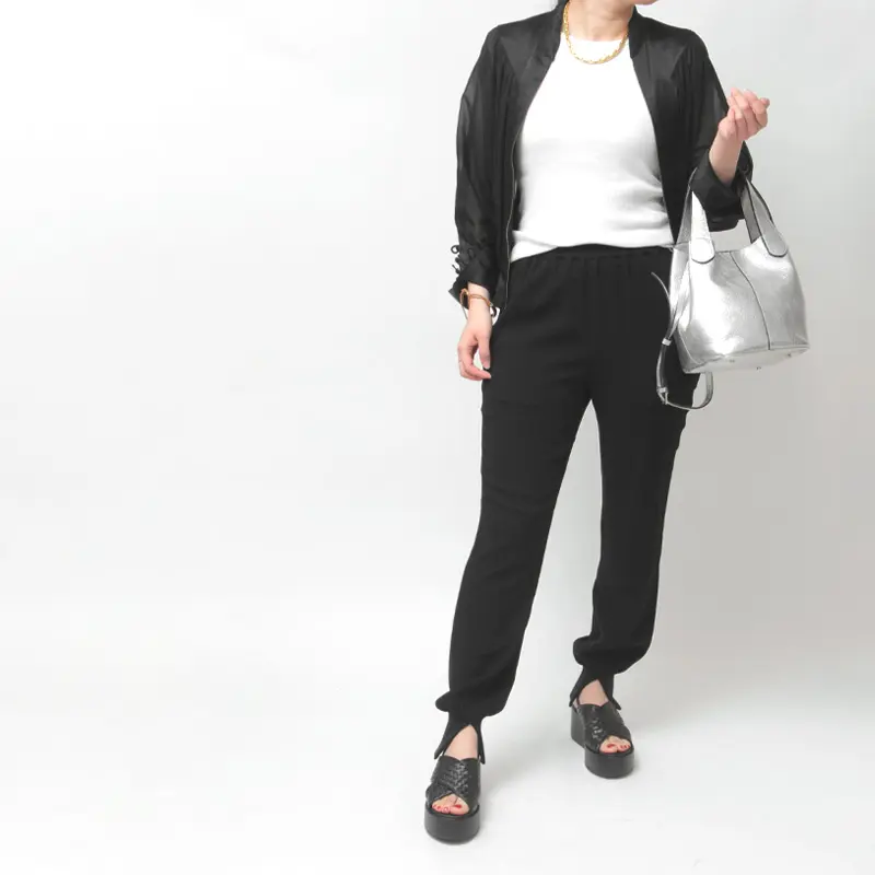 アッパーにはマットなツヤ感が美しい上質な編み込みレザーを使用し、落ち着いた品のある佇まいに。ワイド幅のクロスデザインが甲をしっかりホールドしつつ、足を長くすっきり見せてくれます。
