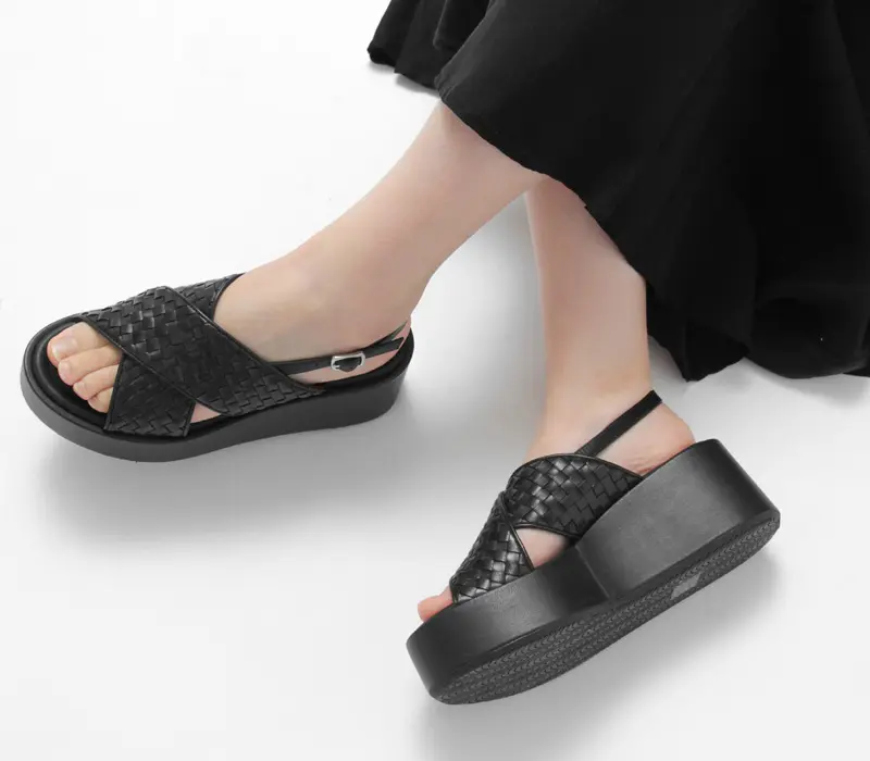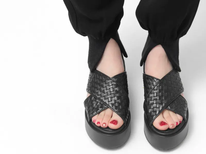 ぺたんこ靴の快適さとヒールのいいとこ取りで楽ちんにスタイルアップを叶えられるプラットフォームサンダル。ミニマルなデザインながら、オープントゥが程よい抜け感をプラスし、編み込みレザーが足元をエレガントに彩ります。シンプルながらも存在感があり、さまざまなスタイリングに馴染む一足です。